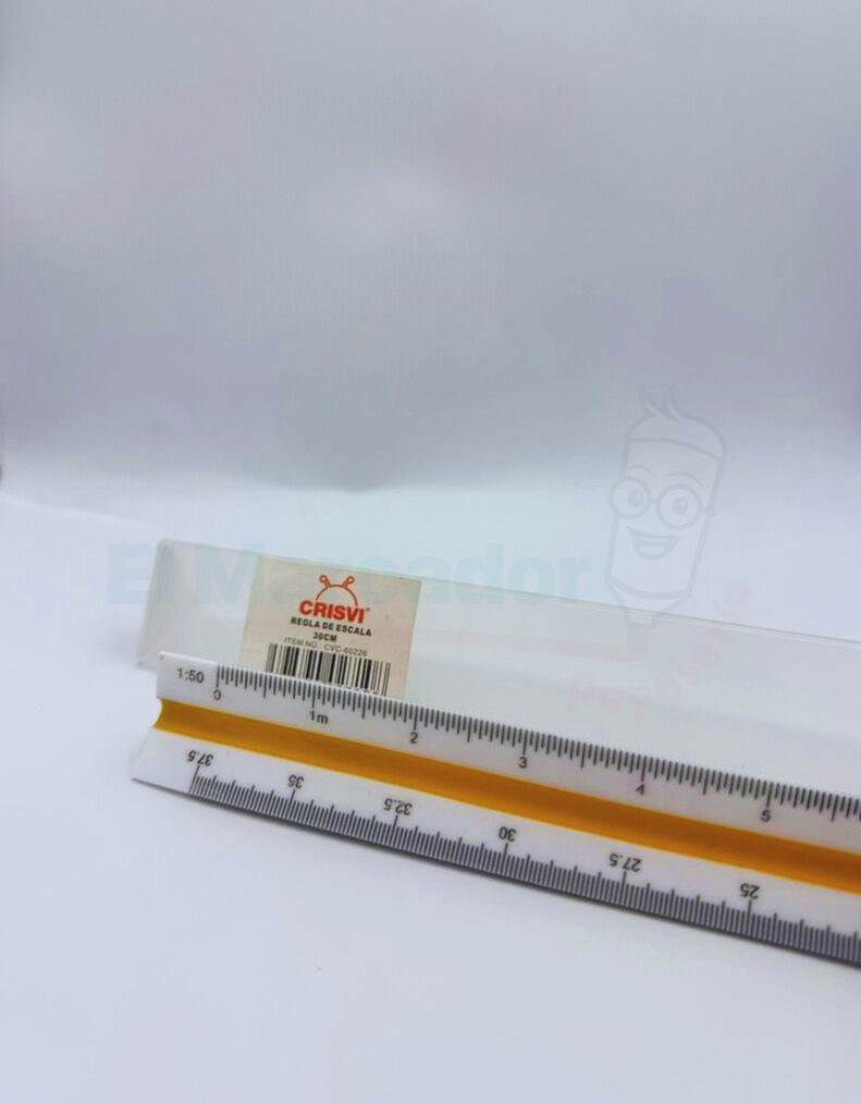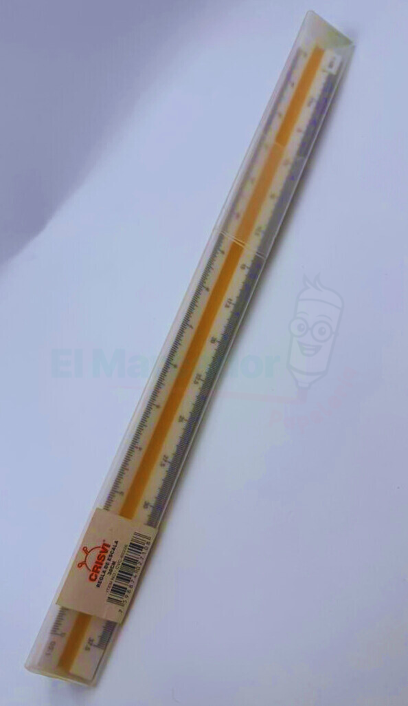 El Escalímetro Crisvi de 30 cm es una herramienta de medición de alta precisión fabricada en poliestireno de alto impacto (plástico técnico). Su diseño de sección triangular está específicamente concebido para facilitar la lectura y el trazado de planos a diferentes escalas, permitiendo convertir dimensiones reales a representaciones gráficas con total exactitud sin necesidad de cálculos manuales.