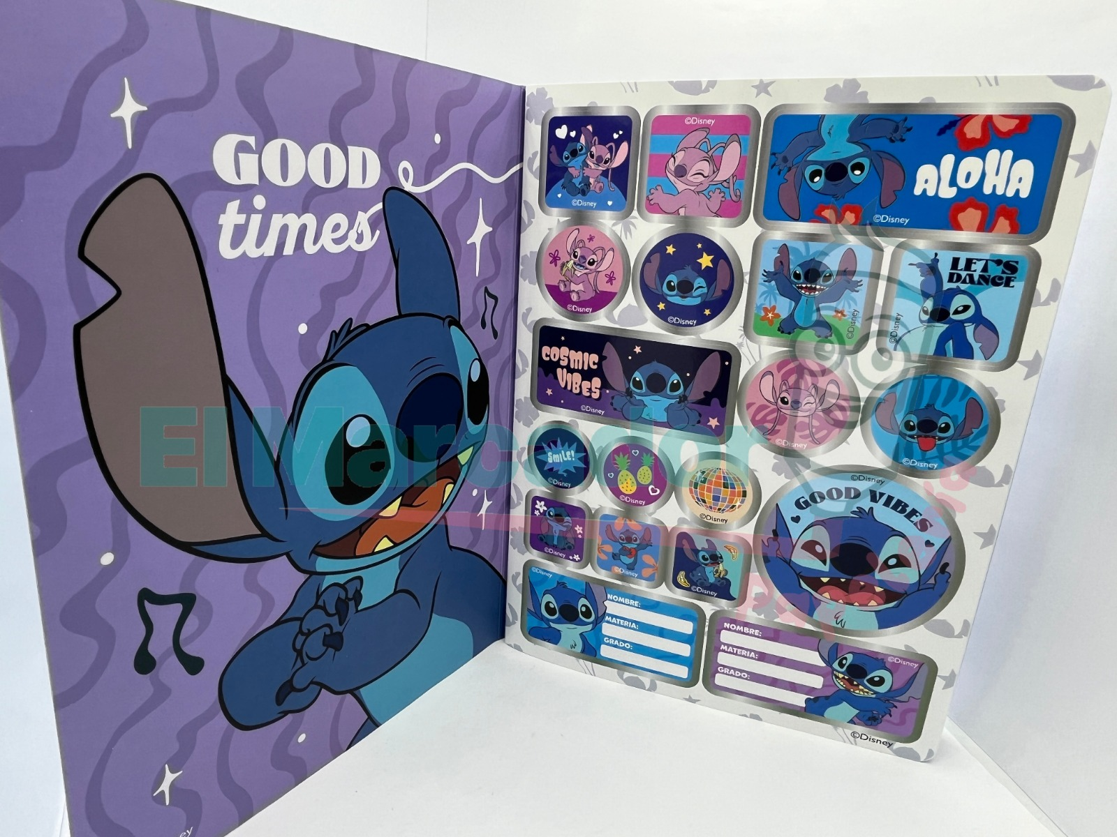 LIBRETA COSIDA A RAYA STITCH 100H CON STICKERS
